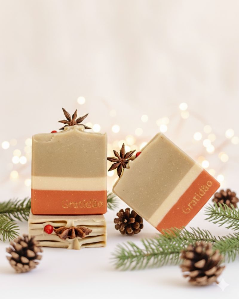 O Sabonete Torta de Maçã combina o perfume doce da maçã com o toque quente da canela — uma lembrança sensorial das festas de fim de ano. Produzido artesanalmente com manteiga de cupuaçu agroflorestal da Amazônia, ele hidrata, perfuma e encanta.