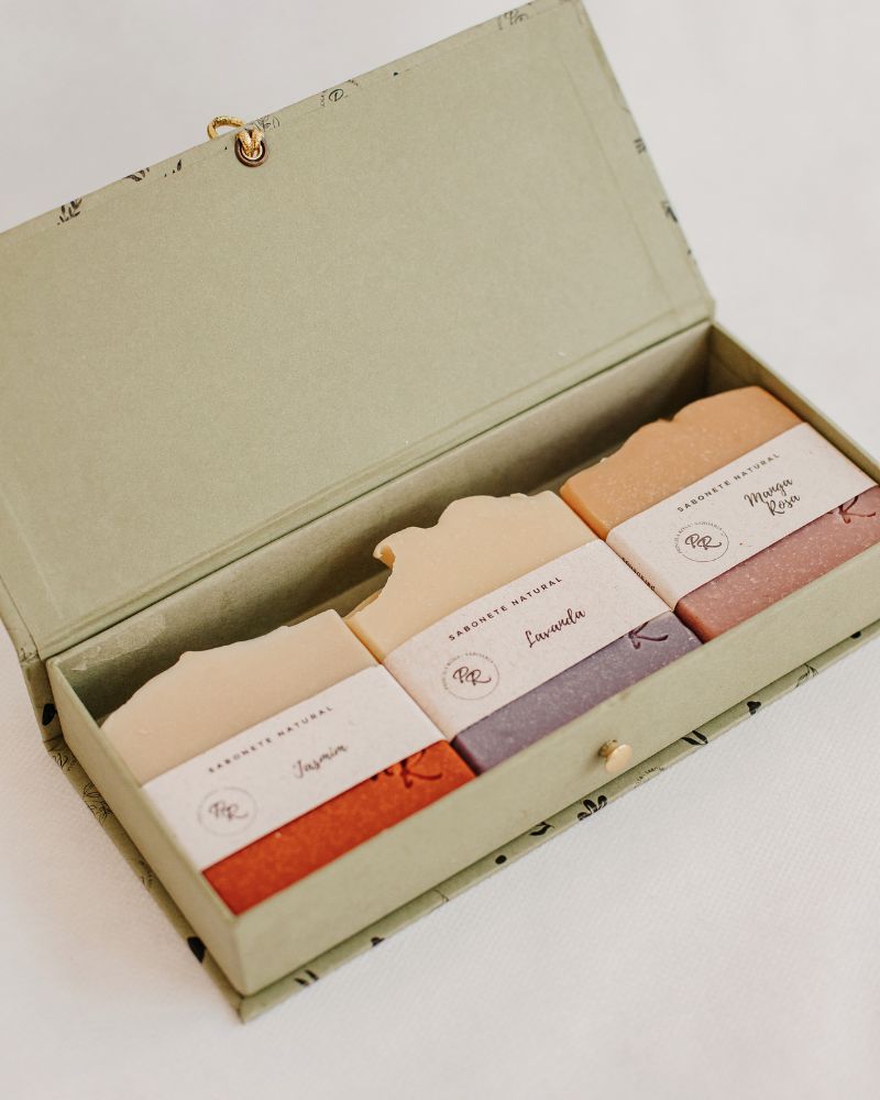 O Trio Sensorial PR é a escolha perfeita para presentear com sofisticação ou se mimar com uma experiência única de autocuidado. Em uma embalagem cartonada estampada, elegante e presenteável, você encontra três combinações exclusivas de sabonetes artesanais — criados com manteigas e óleos amazônicos para transformar cada banho em um ritual de bem-estar.