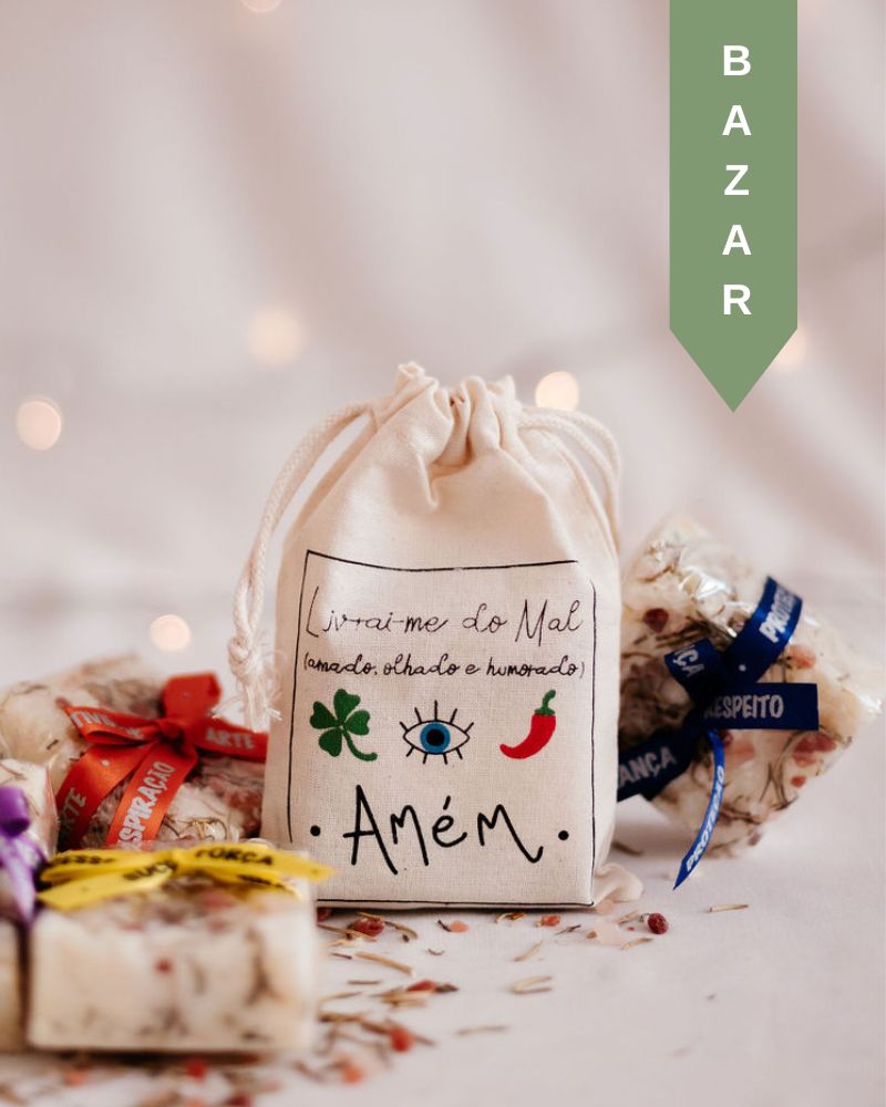 A espuma é cremosa e abundante, e a embalagem temática com fitinha de desejos e saquinho de algodão cru personalizado transforma o sabonete em um presente simbólico e cheio de boas intenções.